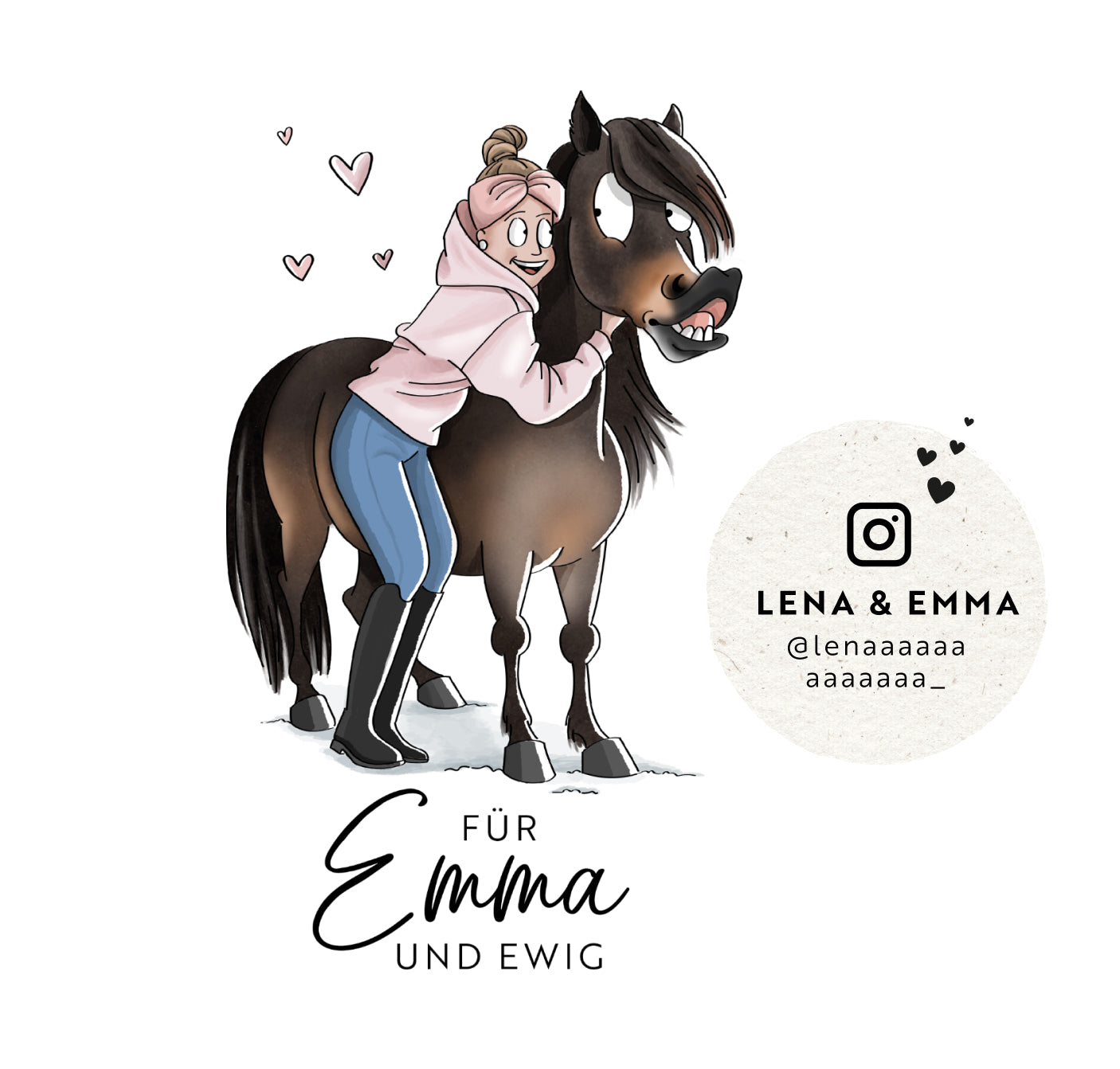 Wir machen dein Pferd zum Star: In einem liebevoll handgezeichneten Unikat mit ganz viel Charme – im einzigartigen mrs. RIDE Comic-Stil. Einfach Lieblingsfoto hochladen, Wunschname eingeben und unsere Gründerin Nadja verwandelt deine Fellnase in dein ganz persönliches Unikat für die Ewigkeit. Du erhältst deine Zeichnung als hochauflösenden Download und optional auf deiner neuen Lieblingstasse. Eine Erinnerung für die Ewigkeit und perfekt auch als Geschenk.